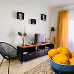 The 100 m^2 Seashell Apartment Oura is situated in the Areias Sao Joao district, 37 minutes' drive from Faro airport. Providing an aqua park, a golf course, and a garden, this 1-bedroom apartment overlooks the garden and is nestled around a 5-minute walk from Santa Eulalia.